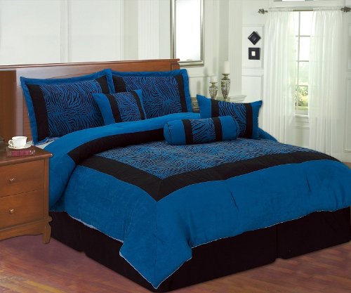 8pc Blue / Black Zebra Faux Silk Flock Printing Comforter Set Bedding-in-a-bag, Queen Review
