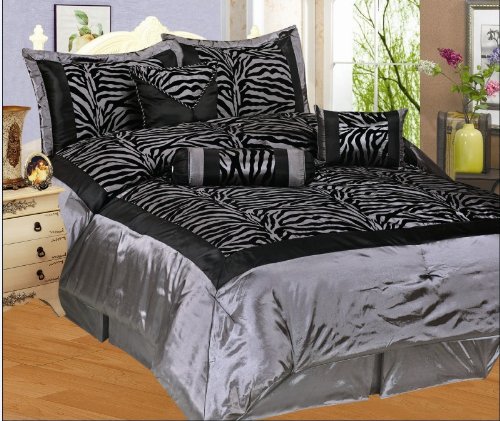 Faux Silk Flocking Grey / Black Zebra Printing Comforter Set, Twin Review