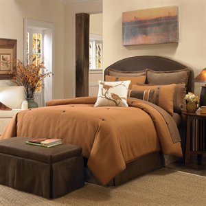 Hampton Hill JLA10-071/72 Features: -Available in Oversized Queen or Oversized King sizes. -Queen set includes a comforter, adjustable bed skirt (16" to 20" drop), 2 standard shams, 2 Euro shams and 2 decorative pillows. -King set includes a comforter, adjustable bed skirt (16" to 20" drop), 2 king shams, 3 Euro shams and 2 decorative pillows. -Color: Rust. -Button tufting on the comforter gives it a cozy look. -Including tailored and banded breakfast pillow and a beautifully detailed embroidered pillow. -Embroidered pillow with birds on a branch complement this warm ensemble. -Dry clean only.